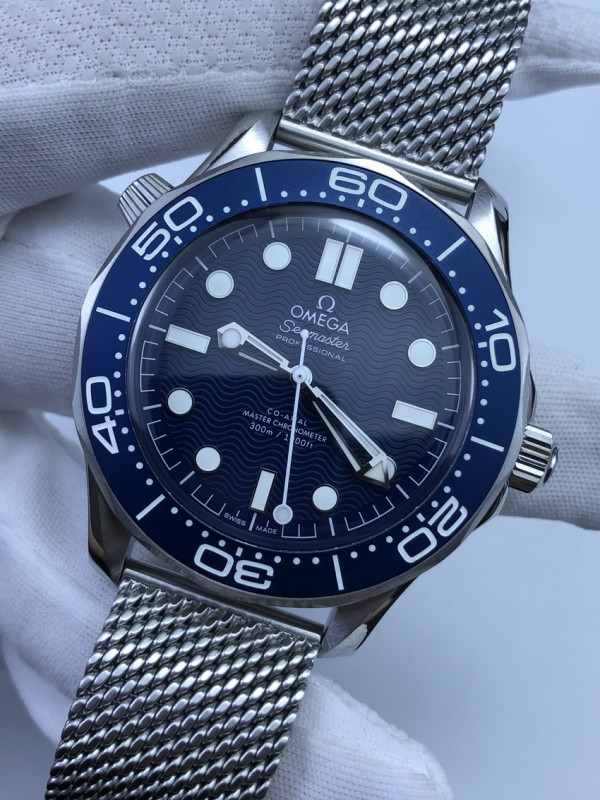 (준비완료/특급배송/예상수령5일)NO.71/VS공장 오메가 씨마스터 다이버300 제임스본드 60주년 블루물결텍스쳐다이얼 메쉬스트랩