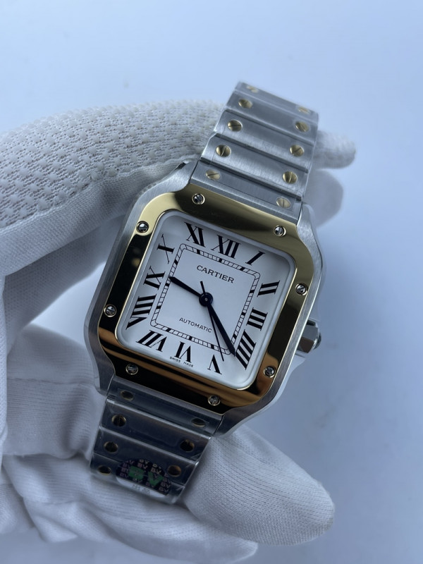 (준비완료/특급배송)NO.1305/ BV공장 까르띠에 산토스 2018 미디움 스틸 옐로우골드콤비 화이트다이얼 스마트링크 브슬 35MM > 쇼핑