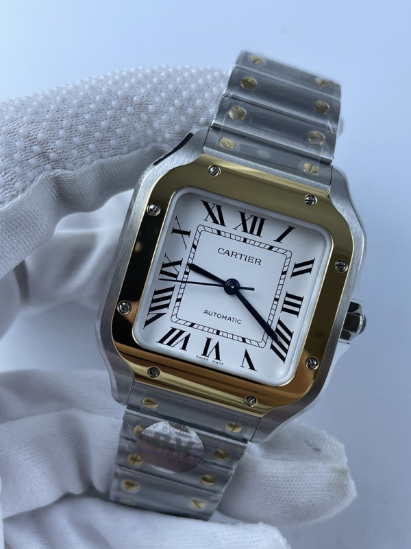 (준비완료/특급배송)NO.1765/3K공장 까르띠에 산토스 드 화이트다이얼 옐로우골드 40MM 브슬 라지