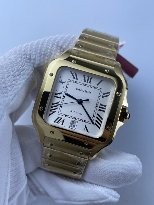 (준비완료/특급배송)NO.1765/3K공장 까르띠에 산토스 드 화이트다이얼 옐로우골드 40MM 브슬 라지