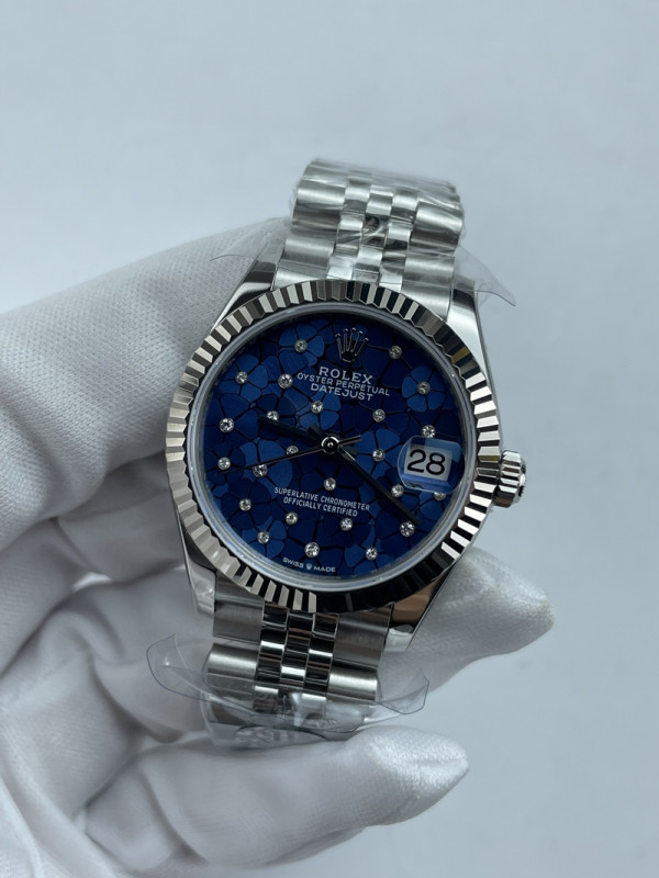 (준비완료/특급배송)NO.3603/롤렉스 데이저스트 31mm 여성용 시계 플로럴 모티프 아주로 블루 다이얼 플루티드 베젤 쥬빌레 밴드 (QP공장) > 쇼핑