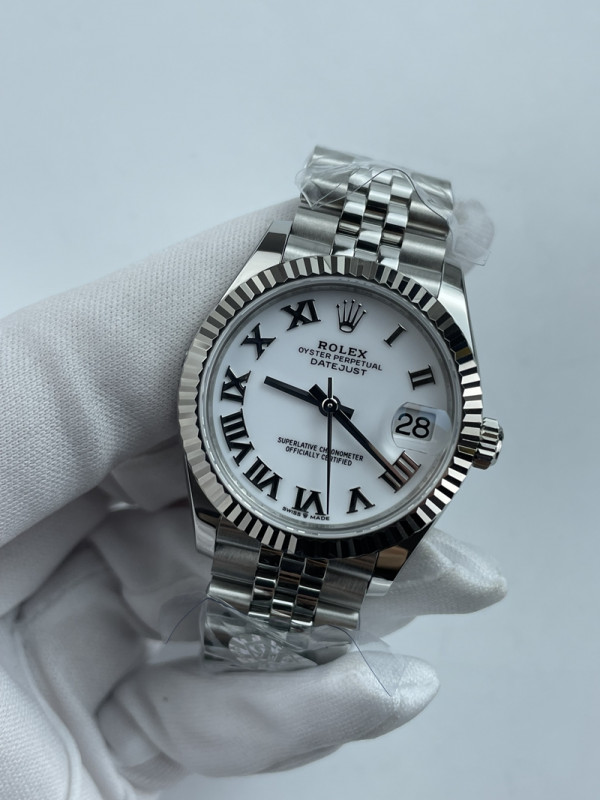 (준비완료/특급배송)NO.3605/롤렉스 데이저스트 31mm 여성용 시계 화이트 로만다이얼 플루티드 베젤 쥬빌레 밴드 (QP공장)